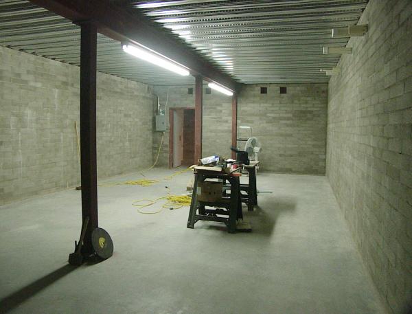 The basement sat uncovered for four months before we got the roof put on; during this time, quite a bit of desert dust and sand accumulated on the floor -- enough to fill eight five-gallon buckets. After clearing that out, we swept and vacuumed the entire floor three times, followed by two moppings, in order to get the floor clean.
